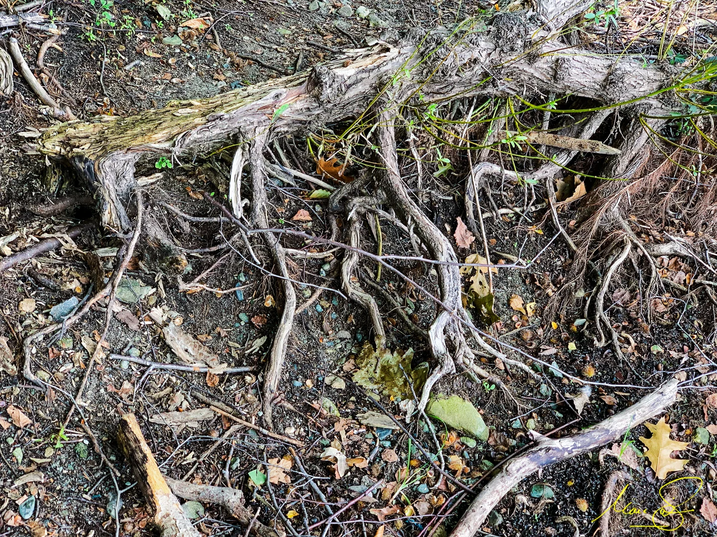 Yesterday, walking around the Pond without my camera (what I call my “big camera” although it is elegantly small), I noticed some roots beneath my shoe that appealed to me and took a shot with my phone. I had several thoughts: first, this is almost a wonderful composition - not quite but awfully close! And second: who cares! This is the raw beauty of our world, perhaps not breath-taking but it is the stuff we live with and live around. The world wouldn’t work in the same way without it.