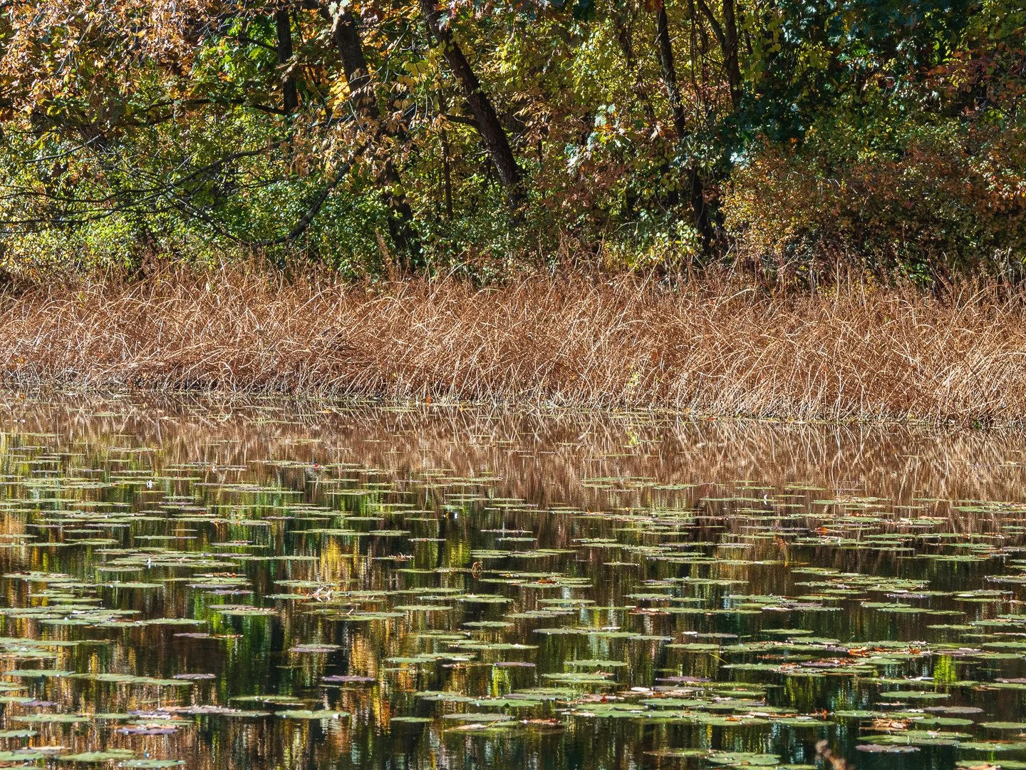 But when I looked at this shot in Lightroom, I realized that while there were some reflections, that wasn’t the dominant element in the image. It was the contrast between the various textures and the interplay of greens and reds. And yellows… And how they play in layers, bouncing off one another.