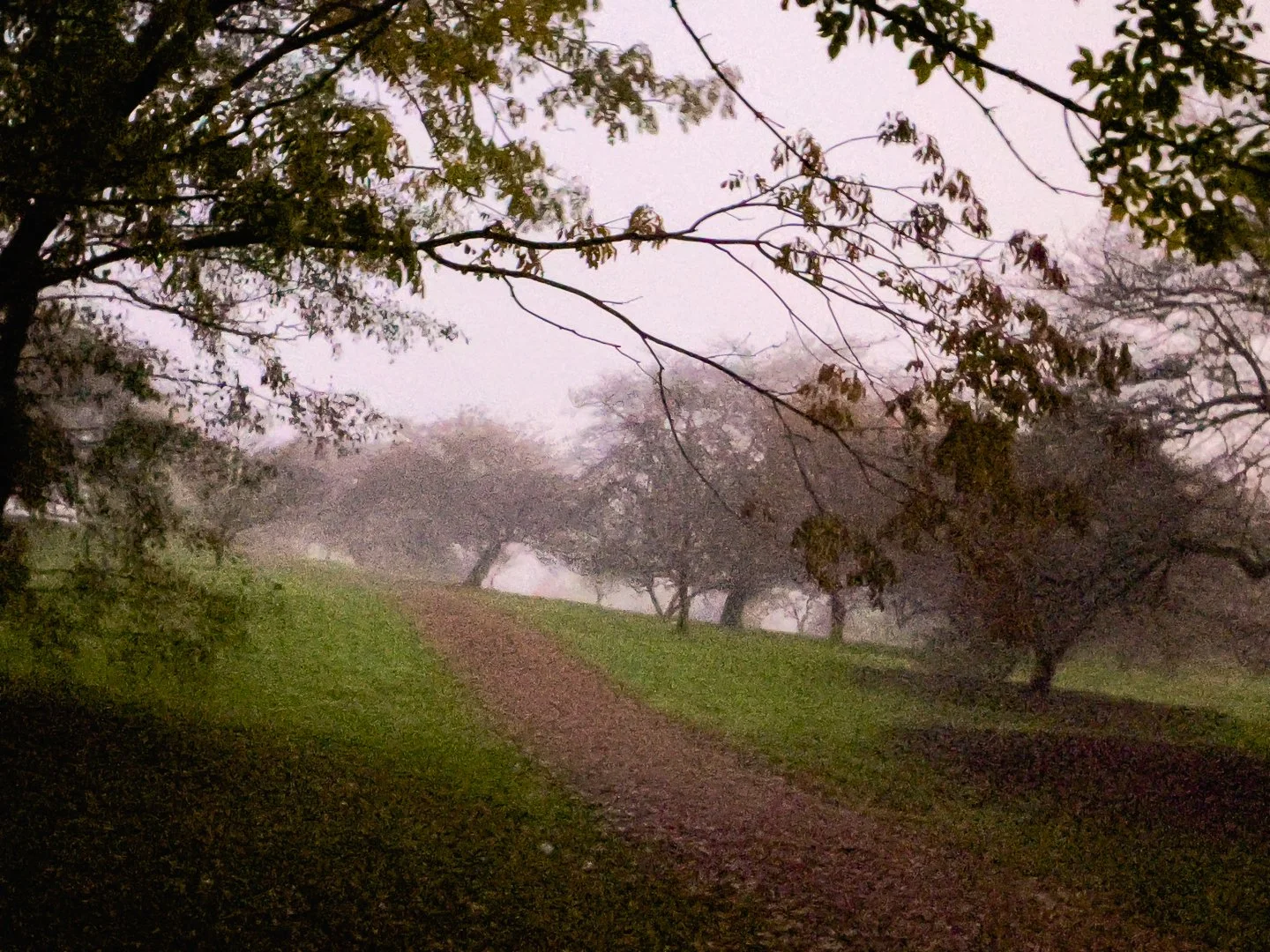 This morning I left a bit later than I usually do. The mist was thick and because it was later and therefor lighter, I was able to almost see my surroundings. Having acclimated to walking the dark, I was a bit startled to be able to see my surrounding. What a surprising blessing of color and texture that I hadn’t realized I’d been missing.