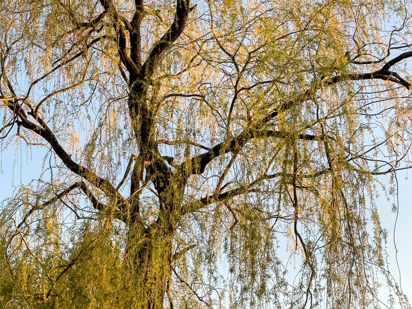 In the meadow near the train tracks and the South Street Gate (I’m sure the meadow has a name and I’ll learn it sooner or later), there is a weeping willow. Today it strikes me as an odd name for this tree. It’s glorious, thriving in its location and mass producing new leaves, new growth, not as bright yellow as forsythia but bright enough to wake you up. Of the many feelings it engenders in me, weeping is not one.
