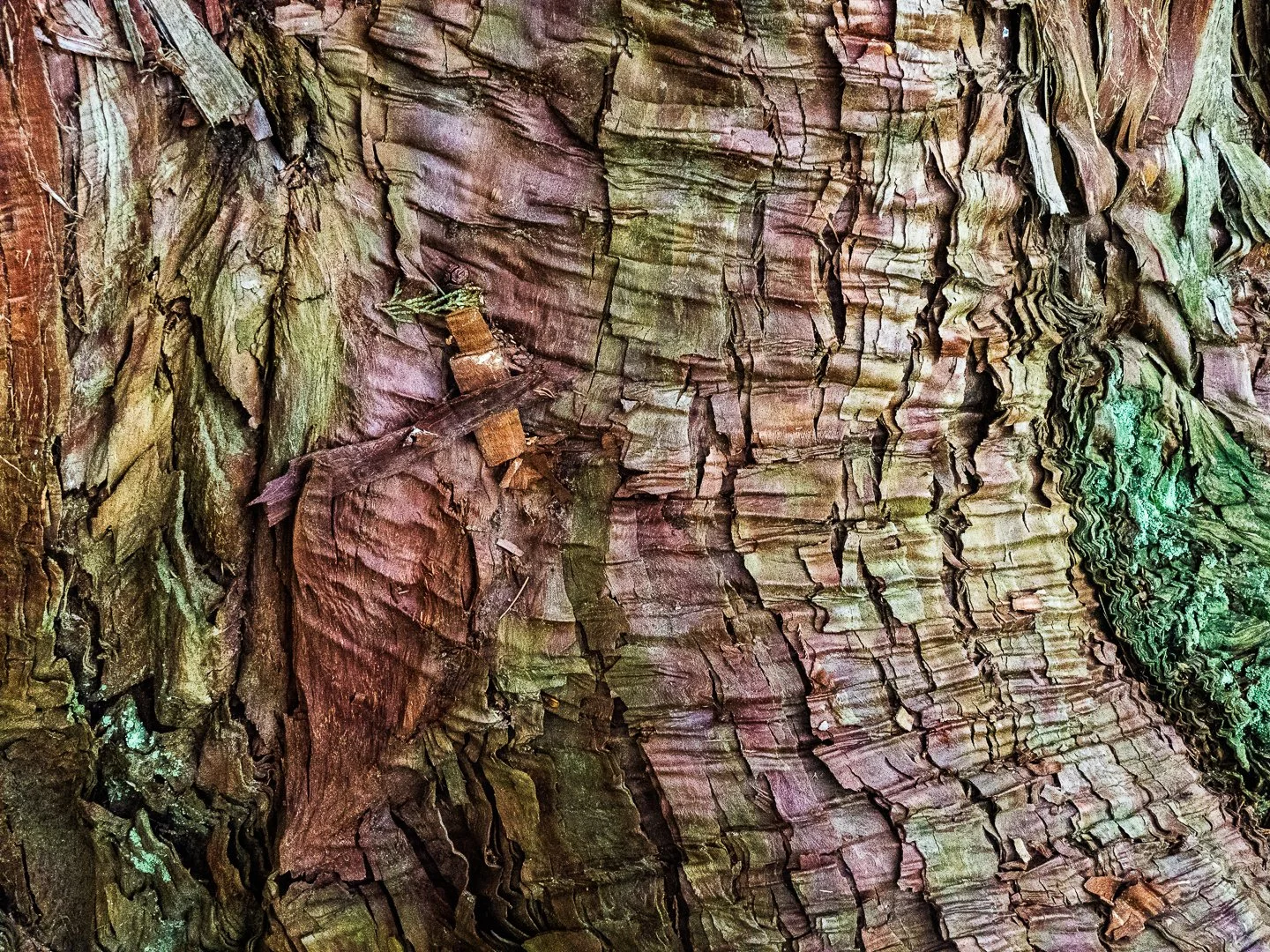 This is the bark of a Japanese Cypress tree and, more so than most of my shots, I’m not sure I would have known I was looking at tree bark if I hadn’t been there holding the camera. There’s so much going on - the colors, the textures, the patterns. And why is it the way it is: the placement of the ripples, the peeling of sections of bark. Such complexity in something as simple as the bark of a tree. It takes my breath away.