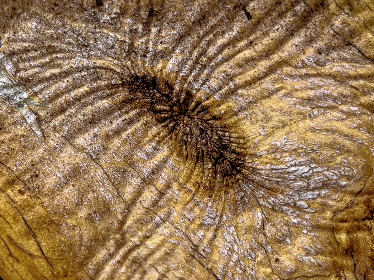 Depending on how I squint, this looks like fallow field with some enigmatic, dark central area; or perhaps it feels more like skin from a wizened body of some creature, real or imagined.
