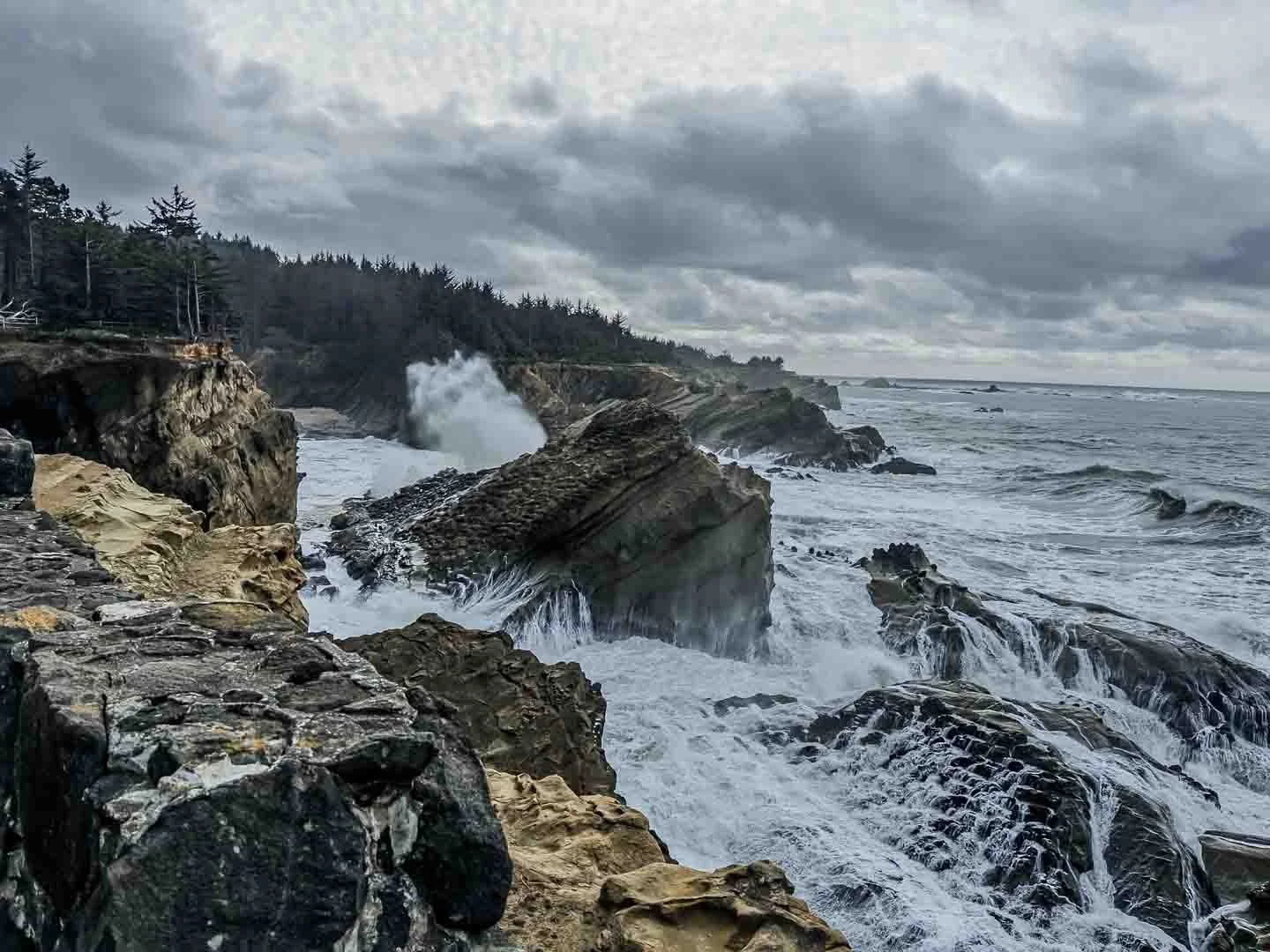 I was visiting my oldest friend and we drove to the coast of Oregon on a windy day, not nearly as much uproar as this image suggests. I think that’s just how it works on the Oregon coast. Lots of rocks and lots of water crashing against them.